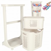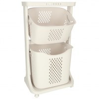 Vasketøjskurv med dobbelte kurve på hjul – plast, 44 × 77,5 × 32 cm