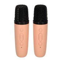 Karaokeanlæg med Bluetooth – 2 mikrofoner + bærbar højttaler, USB, LED, pink