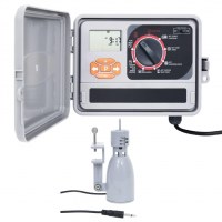 Regnsensoren kan tilsluttes vandingstimeren med en ledning, hvilket sparer vand ved at forhindre vanding under eller efter tilstrækkelig regn. Denne regnsensor til vandingstimer kan justeres til registrering af 5 forskellige nedbørsniveauer ved 3 mm, 6 mm, 12 mm, 19 mm og 25 mm. Afhængigt af indstillingerne stopper denne sensor vandingstimeren, hvis det allerede har regnet tilstrækkeligt.