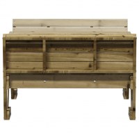 - Imprægneret træ: Picnicbordet er fremstillet af massivt fyrretræ. Massivt fyrretræ er et smukt naturmateriale. Det har en lige årestruktur, og knasterne giver materialet dets karakteristiske, rustikke look. Imprægnering er en konserveringsproces, der udføres ved hjælp af autoklaver. Trykbehandlingen øger modstandsdygtigheden over for råd og vejrlig.