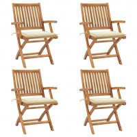Foldbare havestole 4 stk. med hynder massivt teaktræ