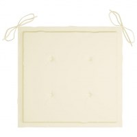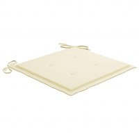 Dette møbelsæt er fremstillet af yderst slidstærkt teaktræ, som er ovntørret og derefter fintslebet, så det har en meget blød og glat overflade. Teaktræ er kendt for sin enestående styrke og vejrbestandighed, hvilket gør det langt mere velegnet til havemøbler i forhold til andre træsorter. Teaktræ er det perfekte valg, hvis du ønsker at købe langtidsholdbare møbler. Spisebordsstolene er vejrbestandige og lette at rengøre takket være den slebne overflade. De kan også foldes sammen for at spare plads, når de ikke er i brug. Derudover giver de medfølgende hynder ekstra komfort. Hver hynde er forsynet med 2 sæt snore for nem fastgørelse til stolen.