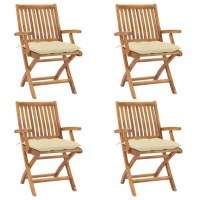 Foldbare havestole 4 stk. med hynder massivt teaktræ