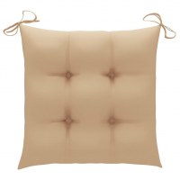 Dette møbelsæt er fremstillet af yderst slidstærkt teaktræ, som er ovntørret og derefter fintslebet, så det har en meget blød og glat overflade. Teaktræ er kendt for sin enestående styrke og vejrbestandighed, hvilket gør det langt mere velegnet til havemøbler i forhold til andre træsorter. Teaktræ er det perfekte valg, hvis du ønsker at købe langtidsholdbare møbler. Spisebordsstolene er vejrbestandige og lette at rengøre takket være den slebne overflade. De kan også foldes sammen for at spare plads, når de ikke er i brug. Derudover giver de medfølgende hynder ekstra komfort. Hver hynde er forsynet med 2 sæt snore for nem fastgørelse til stolen.