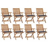 Foldbare havestole 8 stk. med hynder massivt teaktræ