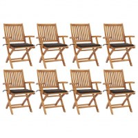 Foldbare havestole 8 stk. med hynder massivt teaktræ