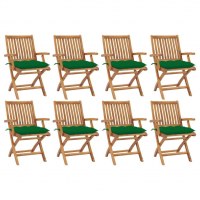 Foldbare havestole 8 stk. med hynder massivt teaktræ