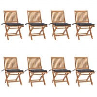 Foldbare havestole 8 stk. med hynder massivt teaktræ