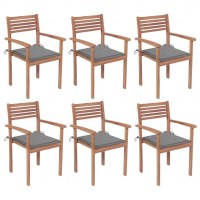 Disse møbler er fremstillet af yderst slidstærkt teaktræ, som er ovntørret og derefter fintslebet, så det har en meget blød og glat overflade. Teaktræ er kendt for sin enestående styrke og vejrbestandighed, hvilket gør det langt mere velegnet til havemøbler i forhold til andre træsorter. Teaktræ er det perfekte valg, hvis du ønsker at købe langtidsholdbare møbler. Disse stole kan stables for at spare plads, når de ikke er i brug. Produkterne har fået en smuk finish for at give træet en varm farve. Derudover giver de medfølgende hynder ekstra komfort. Hver hynde er forsynet med 2 sæt snore for nem fastgørelse til stolen.