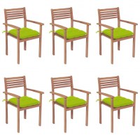 Disse møbler er fremstillet af yderst slidstærkt teaktræ, som er ovntørret og derefter fintslebet, så det har en meget blød og glat overflade. Teaktræ er kendt for sin enestående styrke og vejrbestandighed, hvilket gør det langt mere velegnet til havemøbler i forhold til andre træsorter. Teaktræ er det perfekte valg, hvis du ønsker at købe langtidsholdbare møbler. Disse stole kan stables for at spare plads, når de ikke er i brug. Produkterne har fået en smuk finish for at give træet en varm farve. Derudover giver de medfølgende hynder ekstra komfort. Hver hynde er forsynet med 2 sæt snore for nem fastgørelse til stolen.