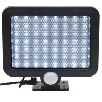 Denne solcellelampe er forsynet med et Li-ion-batteri, der oplades af sollys. Solpanelet absorberer automatisk solenergi om dagen og omdanner den til elektricitet for at oplade batteriet. Der er 56 højtydende LED'er i lampen, som giver et skarpt lys om aftenen. Takket være bevægelsessensoren tænder lampen automatisk, når du træder ind i detektionsområdet, og den slukker igen, når du forlader området. Vores solcellelampe er energibesparende, holdbar og kræver ikke meget vedligeholdelse. Din elregning stiger ikke på grund af denne lampe, da den er soldrevet. Solcellelampen er designet til at være vandafvisende og velegnet til udendørs brug. Den kan nemt monteres på væggen.