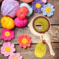 - Komplet startsæt: strikkemaskine, 5 garnfarver, hæklenål og plastnål