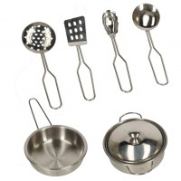 - Inkl. gryde, pande og 4 metalredskaber til realistisk madlavningsleg