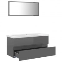 Dette stilfulde badeværelsesmøbelsæt, der består af et vaskeskab, en indbygget håndvask og et spejl, vil være et perfekt match til dit badeværelse eller toilet med sit flotte og stilrene udseende.