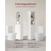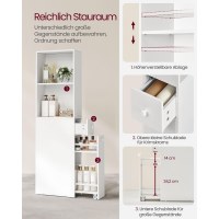 Badeværelsesskab smalt fritstående med skuffer og justerbar hylde, til små rum, hvid