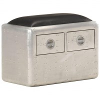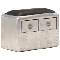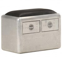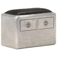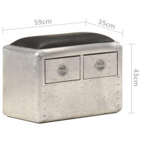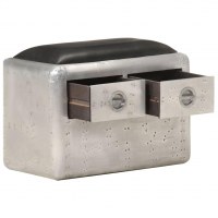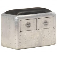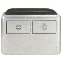 Aviator-bænk 59 cm ægte læder sølvfarvet og sort