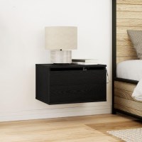 Vægmonteret natbord Sort eg 50 x 36 x 30 cm Konstrueret træ