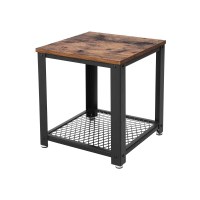 Giv stuen, soveværelset eller køkkenet et råt og varmt udtryk med dette sidebord i rustik brun og sort. Den firkantede bordplade i trælook giver plads til lampe, bog eller kaffekop, mens den stabile metalskohylde nedenunder holder magasiner, kurve eller fjernbetjeninger pænt på plads. Stilrent, funktionelt og let at placere ved sofaen eller som natbord.