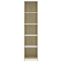 Bogreol med 5 hylder 40x24x175 cm spånplade hvid og sonoma-eg