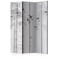 Skærme til værelser er fremstillet af lærred, som er fastgjort på et træstel. De er karakteriseret ved en særdeles solid konstruktion, og der er to forskellige formater at vælge imellem: 3-delt samt 5-delt. De enkelte elementer er forbundet med hinanden ved hjælp af kraftige metalhængsler. Der er ikke det mindste problem med at folde skærmen ud eller samle den igen.
