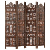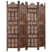 4-panels rumdeler håndskåret 160 x 165 cm massivt mangotræ brun