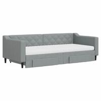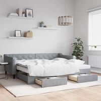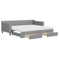 Daybed med udtræk og skuffer 90x200 cm stof lysegrå