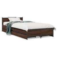 Sengeramme med skuffer 100x200 cm konstrueret træ brunt egetræ