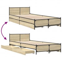 Sengeramme med skuffer 100x200 cm konstrueret træ sonoma-eg
