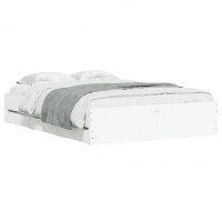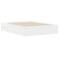 Sengeramme med skuffer 135x190 cm konstrueret træ hvid højglans