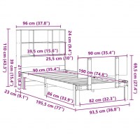 Seng med reol uden madras 90x190 cm massivt fyrretræ hvid