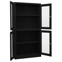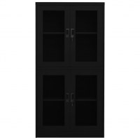 Kontorskab 90x40x180 cm stål og hærdet glas sort