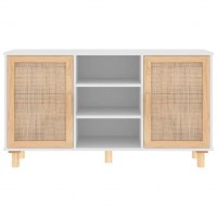 Skænk 105x30x60 cm massivt fyrretræ og naturlig rattan hvid