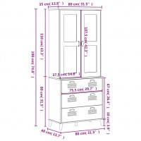 Vitrineskab VIKEN 80x40x190 cm massivt fyrretræ hvid