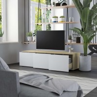 Tv-bord 120x34x30 cm konstrueret træ hvid og sonoma-eg