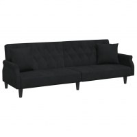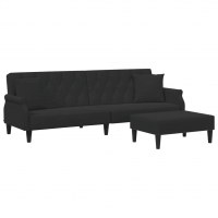 2-personers sovesofa med puder og fodskammel velour sort
