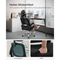 Kontorstol ergonomisk mesh med lændestøtte, justerbar nakkestøtte, vippefunktion, nedklappelige armlæn, høj ryg – Ink Black