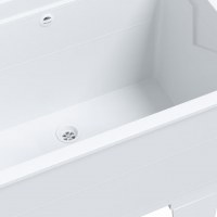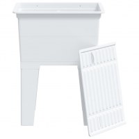 - Praktisk design: Den fritstående bryggersvask er forsynet med en sæbeskål og vaskebræt for øget bekvemmelighed.