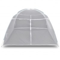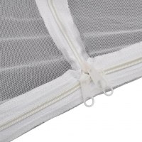 Dette myggenet er lavet af 100 % polyester og er formet som en mongolsk jurte med to åbninger. Myggenettets fine trådnet (225 huller/kvadrattommer) sikrer dig både en perfekt luftcirkulation og beskyttelse mod insektbid. Stængerne er fremstillet af kvalitetsglasfiber, hvilket gør dem meget stabile og yderst holdbare. Ydermere er det utrolig nemt at komme ind under nettet, da der er en åbning i hver side med 2 lynlåse.