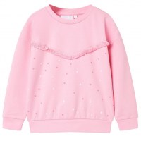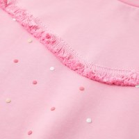 Denne sweatshirt til børn har en rund halsudskæring, lange ærmer, farverige polkaprikker og frynser. Den lyserøde sweatshirt er fremstillet af 95 % bomuld og 5 % elastan for blødhed og komfort.